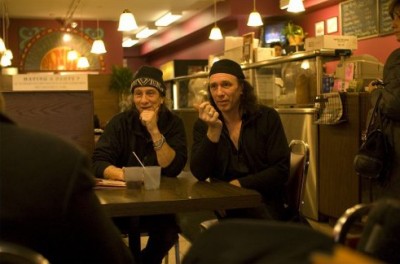 Lips tries to do telemarketing with the help of a very enthusiastic lifetime fan of Anvil, but cannot even produce one sale; this part was especially sad, as even though Lips holds another job, we get a glimpse at how rockers feel when not on the stage, and forced to go to work just like the rest of us (Lips is a man who knows only music; it feels to me he is compromising himself by working a regular job, and that’s why this scene is particularly depressing). An emotional visit with his sister yields a great opportunity for Lips and his band: she gives him what I understood to be around $10,000 to help him make the album.