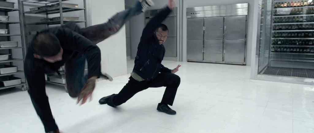 There are some really unique characters in here. One in particular sees Yayan Ruhian (who also apparently choreographed bits of this film – not sure exactly how much but that is excellent) back in action; here, he plays a different character than his insane Mad Dog character from The Raid: Redemption.The character he played was weird, which is awesome. Not only that, he fights a bunch of dudes in the street, while holding a machete, and yet doesn’t actually use it on any of them – not until the final person he fights. This also includes a great blood effect that I cannot get enough of! Evans does a shot of a body sliding down a wall after being ran through with the machete’s blade, except it’s from the rear, and so we get a nice view of the bloody hole from his gut to his back, as it slides down the wall leaving only Ruhian visible through the hole in the wall. Maybe that sounds like a mouthful, but believe me – it is an awesome little, almost throwaway, practical effect. It looks really gnarly, and I totally dug it to the fullest.