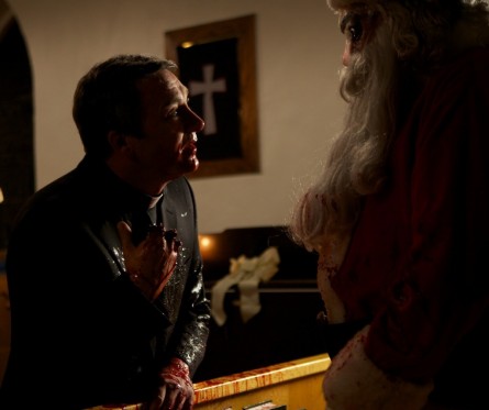One part about Silent Night I really could not stand was the actor who played the priest. Man oh man – I have not seen such a terrible performance in ages. I can’t remember the last performance I hated as much as this one. I mean, the way he acted around the girls dressed up like Santa in that one scene? I really find it hard to believe those girls (young ladies especially are often very good at detecting creeps – especially nowadays) would not have told that priest to get away from them. It was just way too much to even be satirical. If they had only toned him down a little the priest character would have easily worked; he’s one of those guys you want to see butchered by the slasher in a horror movie, and not even in the fun way. This really made me cringe, each single scene I saw him in, and took me out of the movie until, finally, Santa Claus murdered him proper.