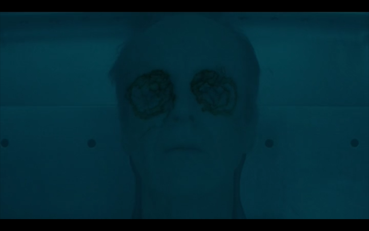 I thought the opening of “Night Finds You” was a really great little piece. Not because of what Frank and Jordan Semyon [Vince Vaughn & Kelly Reilly] are talking about particularly, but because of the image above. First, Frank sees the water stains in the roof, and he wonders where they came from as it hadn’t rained that much recently. Then, as the second scene crossfades with the one before the images mix and the water stains become the eyes of Ben Caspere, City Manager, who was found dead at the finale of the first episode.
