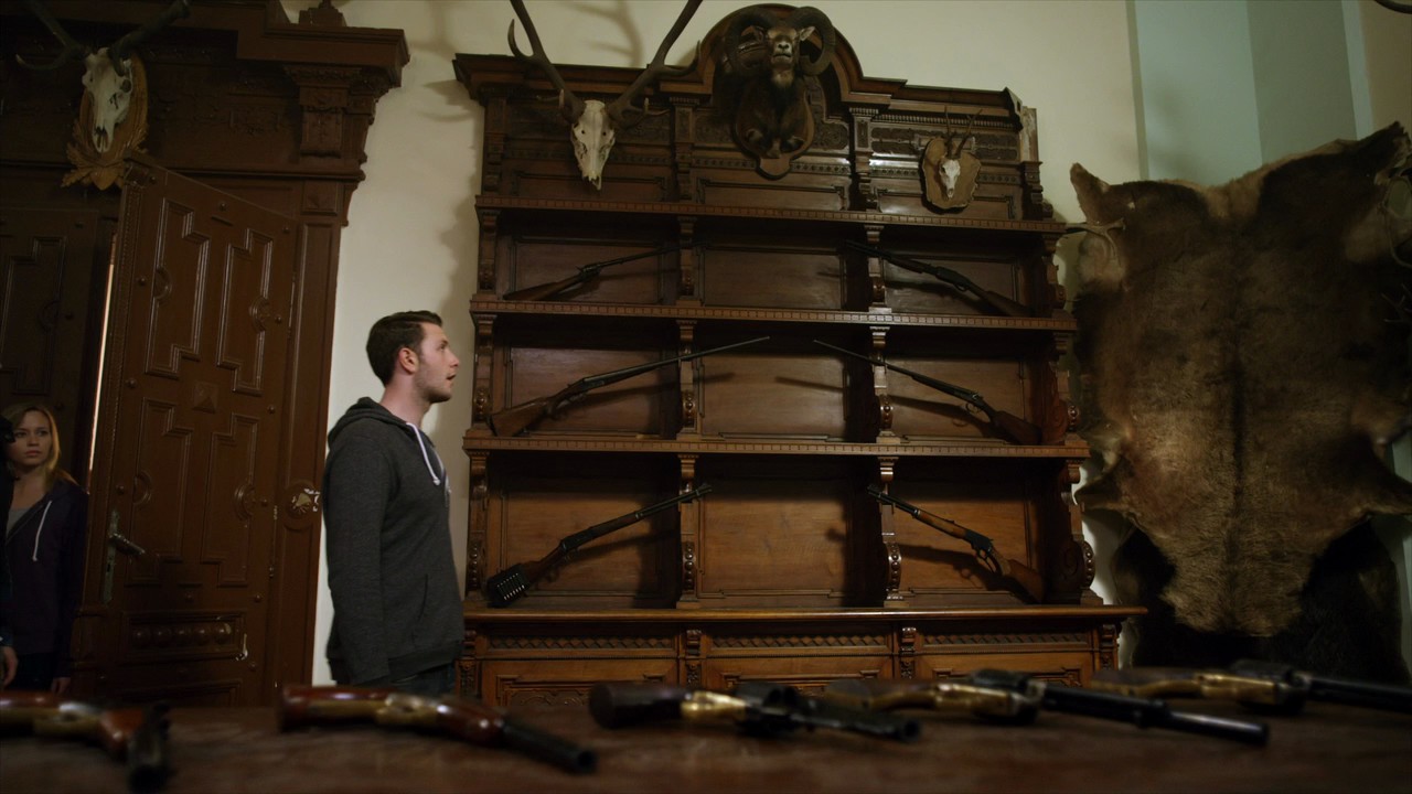 At the Hobb Springs Resort, Danny and his friends are greeted by brother and sister creepy duo, Sally (Sadie Katz) and Jackson (Chris Jarvis). The pair are hospitable, if not a little strange. Soon, though, an older vacationer at the resort goes missing. Sheriff Doucette (Kicker Robinson) asks them to keep a look out, pass around a flyer to see if anyone can help find the woman. However, she is long gone – probably chopped up for dinner by the inbred brothers.