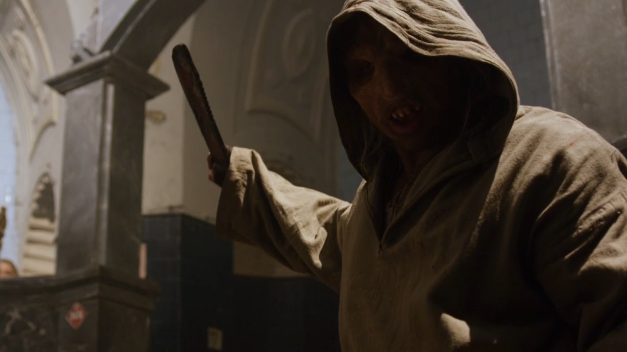 When the old woman gets killed, it is so bad. An axe gets tossed at full-force and not only does it throw her back to the wall, it apparently lifts her a foot off the ground before pinning her to it. I mean – it’s almost as bad as the opening kill in Wrong Turn 2: Dead End, which I found to be too over-the-top. Again it’s not like I’m looking for a level of total realism from these movies, but there’s also got to be a degree of logic in some senses. There’s enough brutality in these movies that it can still be effective without having to get cartoonish.