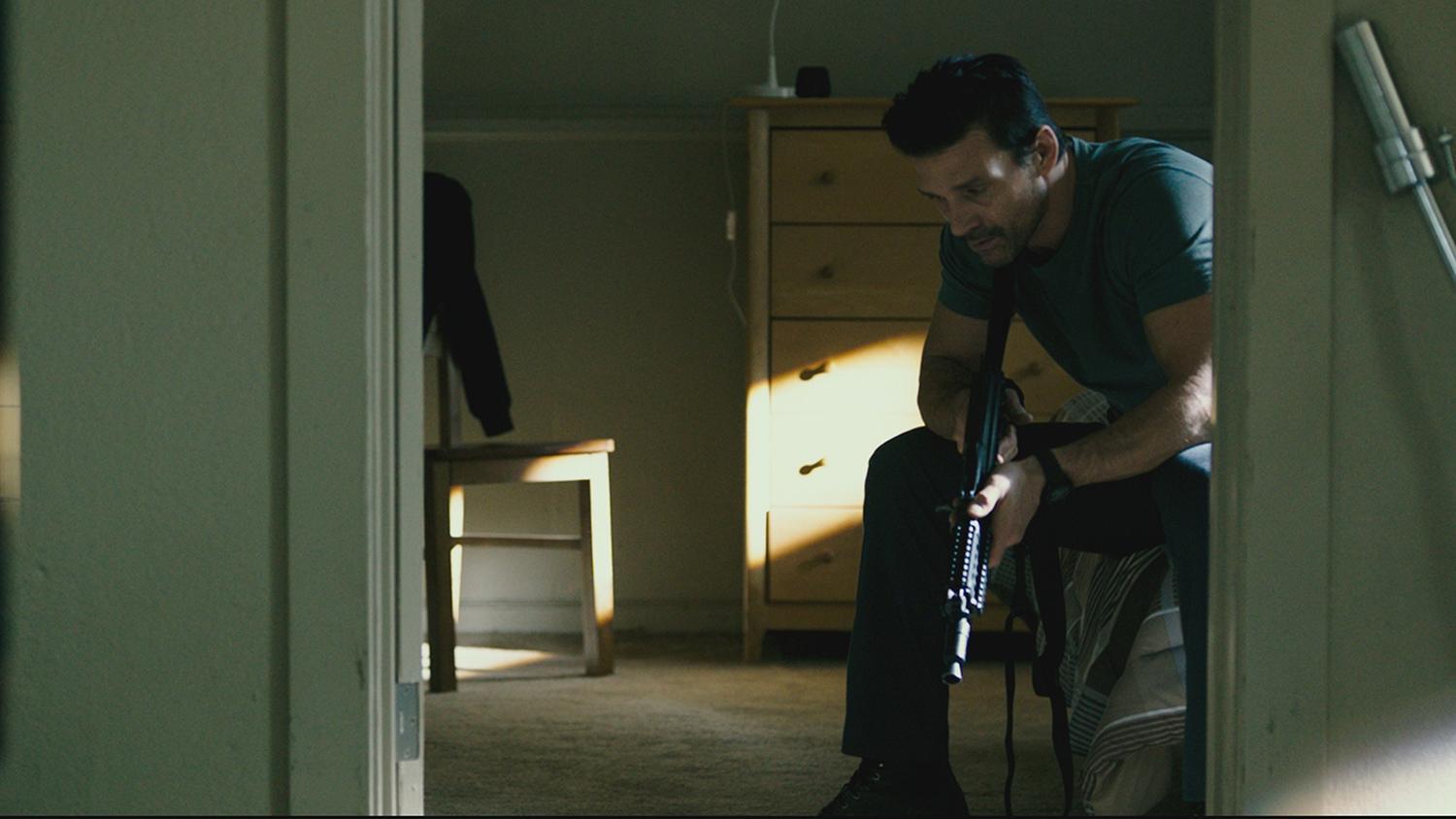All the while, Leo “Sarge” Barnes (Frank Grillo) has a personal tragedy which drives him. He has all kinds of weaponry, a car made to sustain damage throughout The Purge, and there’s obviously someone, or some people, that he seems to be looking for; his bedroom wall has pictures plastered over it.