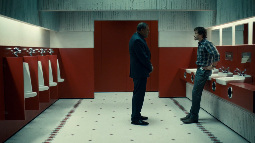 I also love the Stanley Kubrick reference in this pilot. It’s already an awesome scene as is – Jack Crawford really tears into Will, they have an intense moment. But to make things even better, we get the bathroom scene between Delbert Grady and Jack Torrance from The Shining jumping right out at us. There are also beautifully composed/framed shots that scream Kubrick; proportionate and symmetrical shots, the dimensions spread out perfectly in front of us. So I don’t know if that was solely Slade’s idea as director, or if it was Fuller, or maybe a general team decision. Either way, we get a few more images throughout the first season that strike me as direct little homages to Kubrick and it adds a neat flair to this show, making it stand out right off the bat.