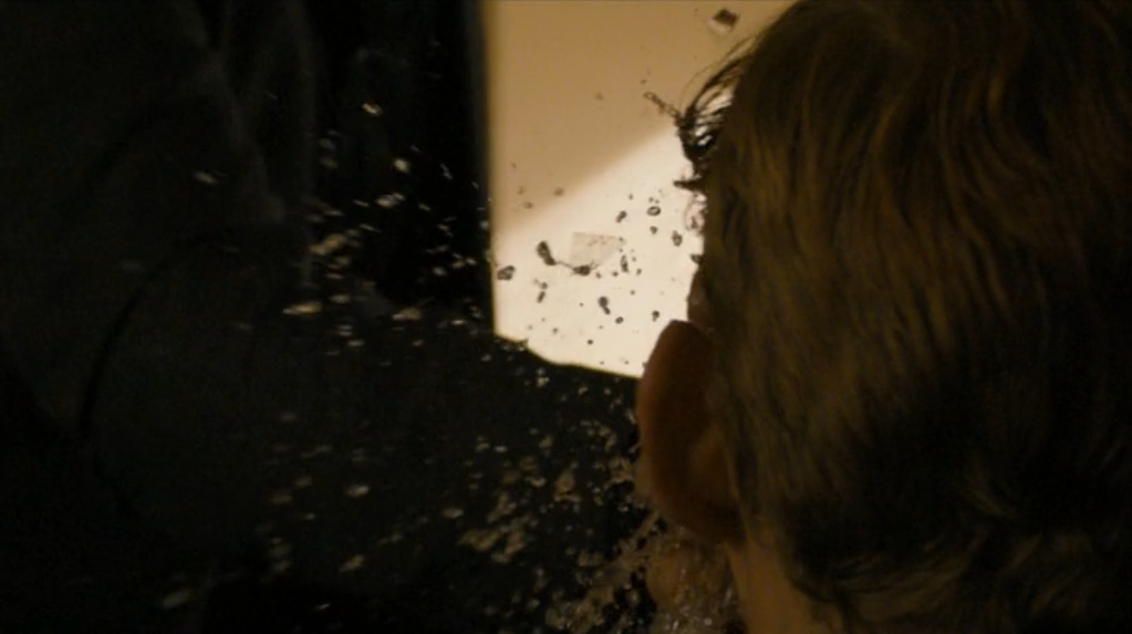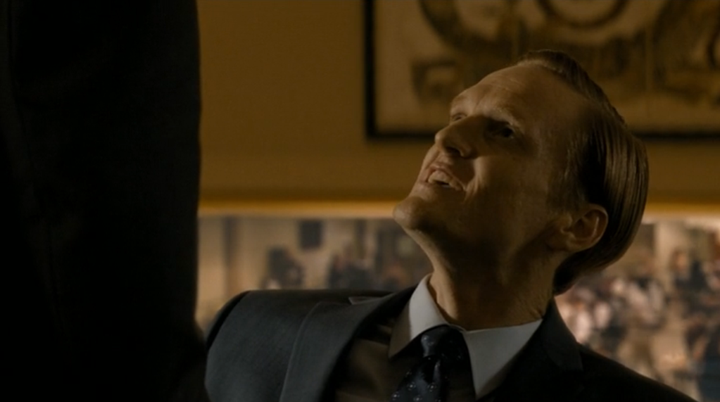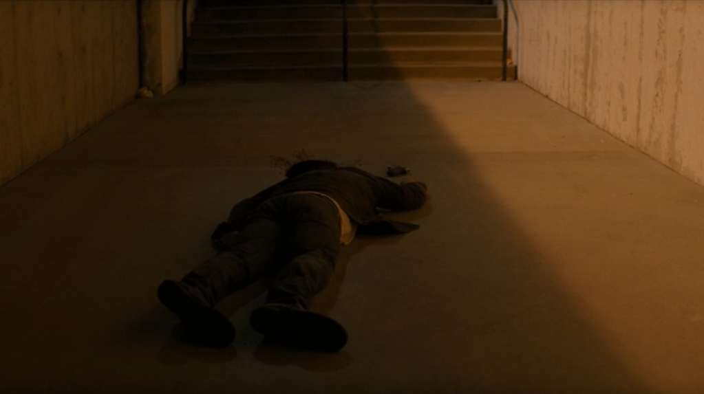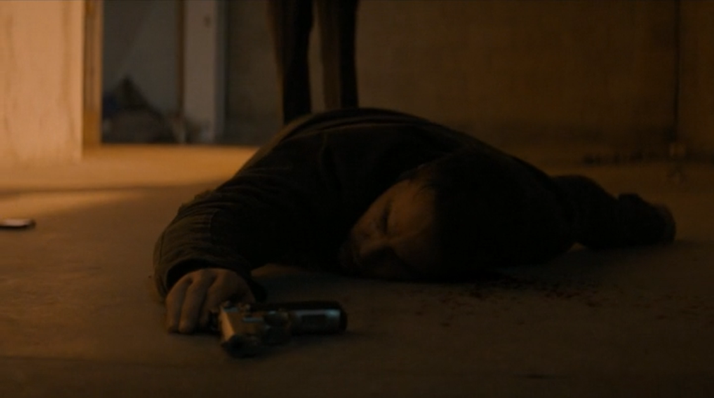 IMG_0267 IMG_0265At first, Blake is allowed to live for the time being at the mention of money. That doesn’t last long: Frank gives Blake the ole Reservoir Dogs gutshot and lets him bleed out on the carpet. Pretty vicious on his part, but as he said he wanted to watch Blake’s lights go out.