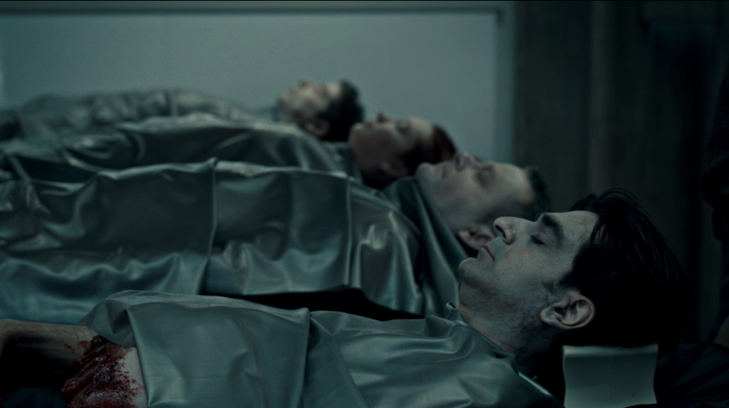 Here is what really interests me. As Hannibal works at his makeshift surgery, Will watches him go. You can absolutely see how Hannibal has completely hidden himself in Will’s blind spot. Clearly, we witness that Hannibal still has plenty of surgical chops left from his days at John Hopkins and the emergency room. Others might believe, as a psychiatrist so long, Lecter got sloppy or forgot how to do most of his surgery-based techniques. Right in front of us, right in front of Will, Hannibal gives up a piece of himself for everyone to see. Juxtaposed with his earlier conversation with Bedelia, the person suit comes off at this moment, unwillingly as he Hannibal certainly didn’t expect to be doing any surgery that evening, and we can see what is underneath. Only briefly, but it is still viewable to the naked eye. Luckily for Lecter, his burgeoning friend Will can’t seem to look past all the decor and find the rotten soul of Hannibal underneath it all.