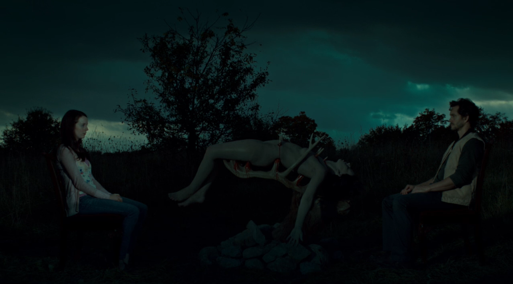 I love when Franklin’s appointment is finished, the look Hannibal has in his eyes is one of hurt; he has not heard from Will, whose perceived slight of not confirming that he wouldn’t be there for his own appointment seems RUDE to Hannibal. Though, rudeness in someone he enjoys does not particularly upset Hannibal. He’s willing to forgive Will, as Hannibal can tell his friend is in a bad place; Hannibal walks in as Will is caught in a dream/hallucination of himself and Abigail Hobbs (Kacey Rohl) at a makeshift dinner table, which is in actuality a young woman impaled on stag horns.