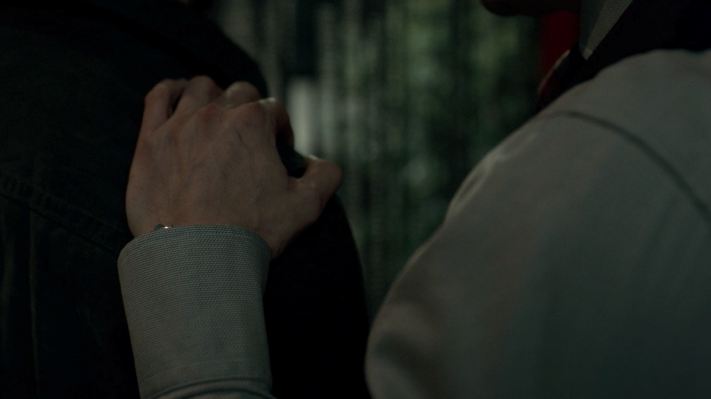 The big moment comes as Hannibal touches Will, his hand on the shoulder. We know that Graham is not someone who likes contact with others, who likes to be touched – not at all. So this is a big moment. He does not shy away from Hannibal’s touch. Bit by bit, their bond becomes stronger, whether Will truly realises it or not.