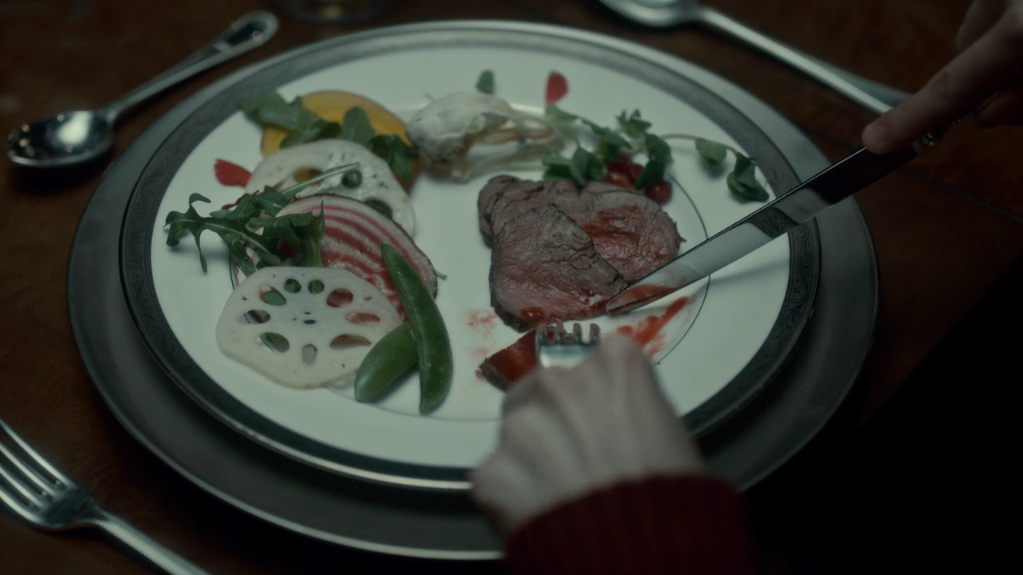 The proof is in the pudding, as he has dreams of being murdered by Abigail Hobbs. The corpse of Nicholas Boyle rises up off a medical gurney, then all of a sudden it’s Abigail, stabbing Will in his guts as she did with Nicholas. Trippy visuals, quite creepy. Here, though, Will does figure out that Abigail killed Boyle.
