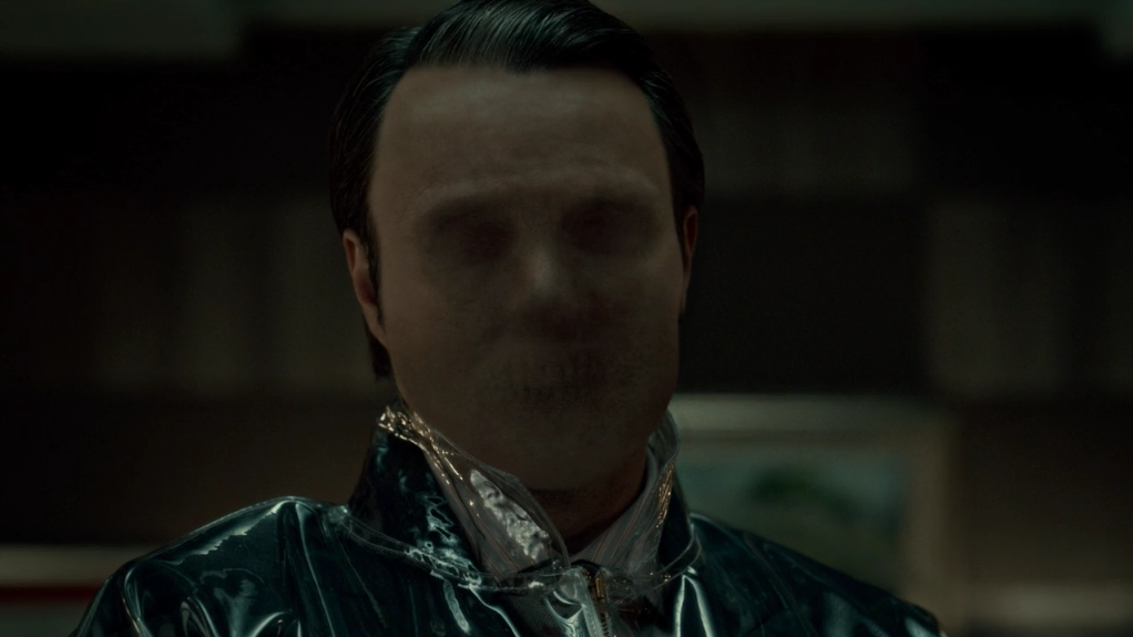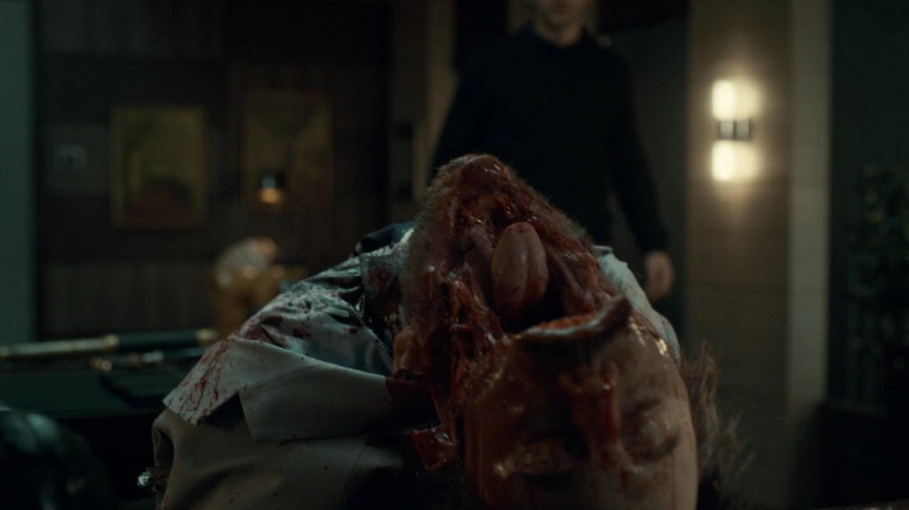 Then there’s the murder of Hannibal’s friend, the doctor, which ends up being blamed on the sick girl – the one with whom Will begins to bond. Hannibal is caught, by her, in the act. Although luckily for him she cannot interpret anyone’s face anymore, they’re all mangled and blurry.