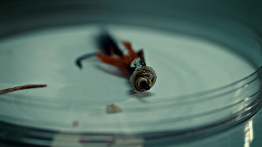 The part with the fishing flies, all that, when the FBI Forensic Team lay out how Will Graham was supposedly using bits of human remains to make them – I loved it! So grim, macabre. There’s just this absolute dread about that whole segment I think was wonderful, especially going out in this finale. Makes things nice and nasty to end on a proper note for the end of a season.