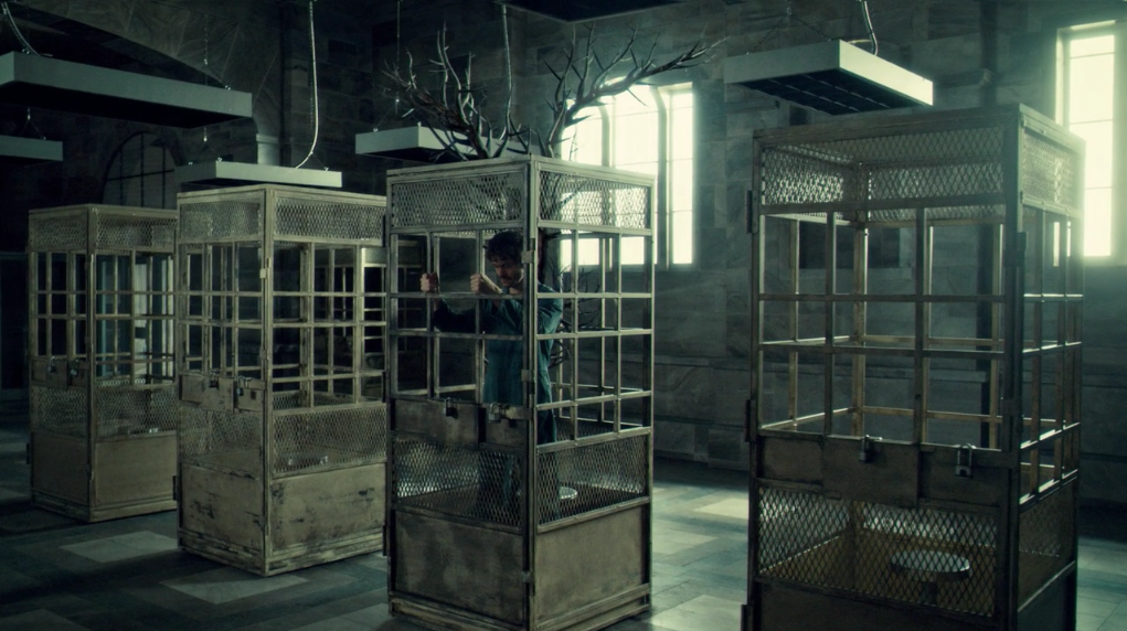 Abel Gideon (Eddie Izzard) comes back into the picture in another big way during this episode. He is a little frustrated by Will Graham, it seems. While Frederick Chilton (Raúl Esparza) listens on, Gideon seemingly confesses to what he’d witnessed while sitting in Hannibal’s “cobalt blue dining room, an ostentatious herb garden with Leda and the Swan over the fireplace” and Will “having a fit in the corner.” Unfortunately for everyone involved, Gideon does not heed the warning of Will Graham, and instead of confessing to Jack in full he merely plays around with everyone. This doesn’t do anything for Gideon either – as he taunts some guards later about the nurse he’d killed in Season 1, the two men have no time for his jokes. Abel gets a nightstick in the mouth, then tossed over the stairs down onto a cage about the guard’s station. Poor guy just does not learn.