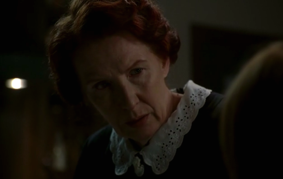 Vivien is still disturbed by the events at the end of last episode, “Open House”, when Violet (Taissa Farmiga) showed her an old picture of the house in the 1920s, one featuring Nora Montgomery. Naturally, Marcy (Christine Estabrook) thinks Vivien is nuts, but Moira (Frances Conroy) offers comfort; no surprise there.