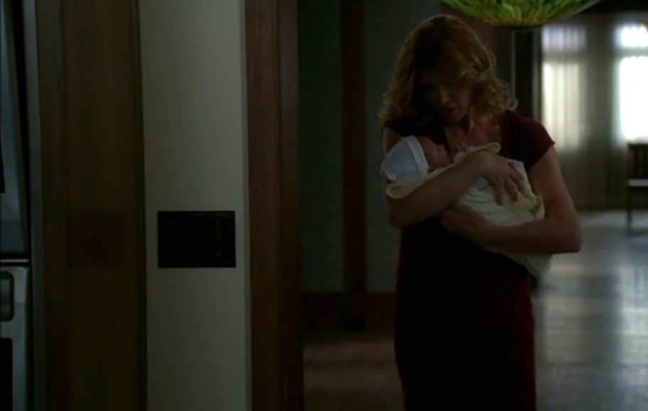 Still, above all else in this episode, I think the best moment of “Afterbirth” is the very finish. Obviously nobody thought the baby – Michael – was going to turn out all right in the end, but what we’re able to see is how as he grows up he becomes more and more like his evil father Tate.