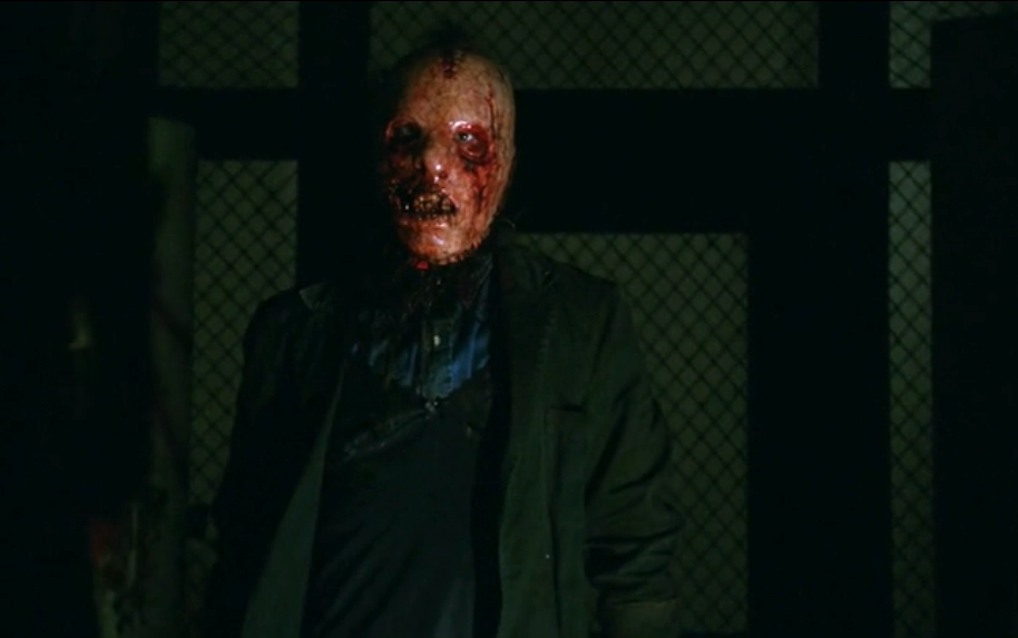 Back to the framing narrative of Asylum now, as we see Bloody Face once again stab poor Leo Morrison (Adam Levine) to death, then break into the cell where Teresa Morrison (Jenna Dewan Tatum) is trembling in fear. Between the two, as Leo is not completely dead just yet, they manage to knock Bloody Face down and stab HIM to death with a small ice pick (one once used for prefrontal lobotomies).