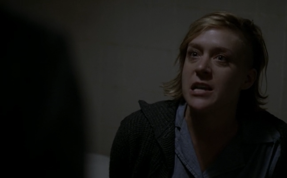 The demon knows all about Jude, about her past life before becoming a nun and a wife of Christ. It’s revealing and also sad, because we can see how clearly Jude tries to run from her past. Still, it always keeps on catching up with her. Love the red dress she wears in the flashback to her life before the convent and Briarcliff; parallels her red lingerie under the habit so well, shows how she still hangs on. Even further, the demon talks about a night when Jude hit a young girl with her car – drunk off her ass. Jude never got out, only went on over the road. It’s a wild scene that speaks volumes.
