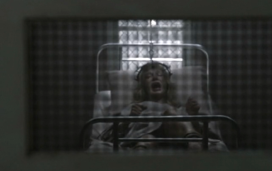 When Lana goes down to kill Oliver, seems Dr. Bloody Face has escaped his ties. Turns out the devilish Sister Mary Eunice let him out. WHOA! Satan really plays hardball. No doubt.Creepiest scene goes to the one between these two, as Mary puts her hand against Lana’s stomach and feels the STILL BEATING HEART of the Bloody Face child beginning to grow inside her. What a brutal shock for Lana and the audience! Doesn’t surprise me the devil can do that, but it’s a rough way for Lana to find out because it must be confusing; she has no idea Satan is creeping around inside the young, delicate nun.