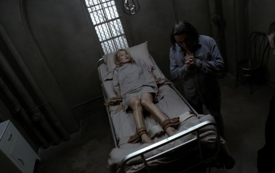 Another flashback to ’63 when Jude doled out some corporal punishment on Emerson, who it seems had some sort of relations with one of the nuns. Then back to present day, as Leigh actually kisses Jude on the forehead. It’s unbelievable the psychological torture she’s now being subject to at the hands of EVERYONE around her. Poor, poor Jude.