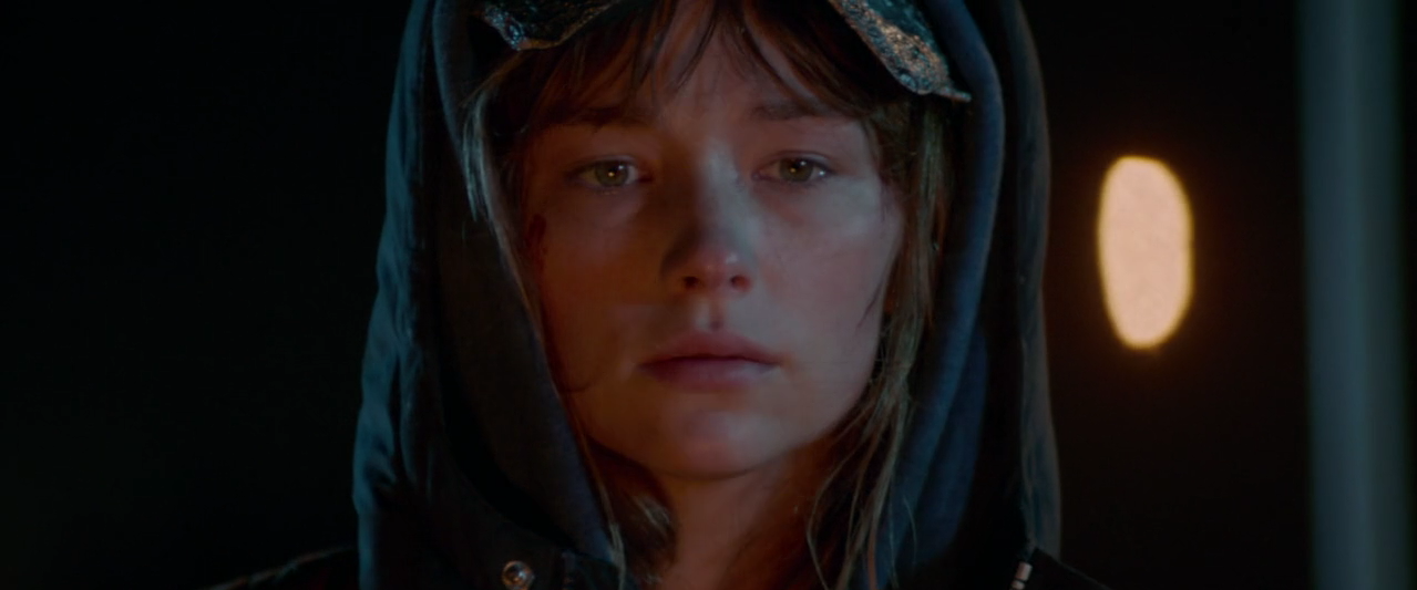 What really does it for me throughout Kristy‘s meagre 86 minute runtime (including the credits/post-credits scene) is the central performance of Haley Bennett as Justine. Not only her performance, I think Anthony Jaswinski’s screenplay has a great character in Justine. She’s a vulnerable, scared young woman in the beginning whose lonely Thanksgiving on campus turns into a nightmare. By the end of this psychologically daunting horror movie, I found myself almost fist pumping because of how kick-ass this woman had become; she had inside her, just like the intellectual side of herself coming out through class and study, this venomous and visceral side which was required in order to cast out these predators. They hunt her down, thinking she’s someone she is not, and she also becomes – in a sense – someone she is not in order to overcome their savagery. I think an important part of Kristy – not just why I like it – is the fact Justine starts off in a position of weakness, but really takes charge and becomes a tougher, stronger person after coming out the other side of a bloody, haunting situation. Justine reminds me of the Erin character from Adam Wingard & Simon Barrett’s You’re Next, yet without the same background, and in a sense a bit cooler.