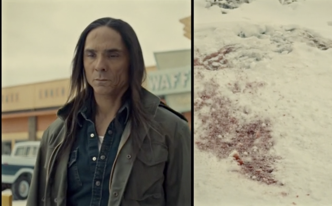 Hanzee Dent (Zahn McClarnon) is more and more a character I’m interested in. At first, he seems like the typical bad guy, the silent man waiting in the wings to do crazy things. But then we see him at the crime scene, we watch him check out tire tracks and look into the sky like a clairvoyant. Though, he isn’t. Just a smart man who has obviously spent his life around these types of nasty situations. Clearly we’ve seen this already last episode in “The Myth of Sisyphus“. We’re just expanding further. He tracks down the Blomquist car at a garage, where a very Coen-ish type mechanic character gives up a little too much information about Ed.