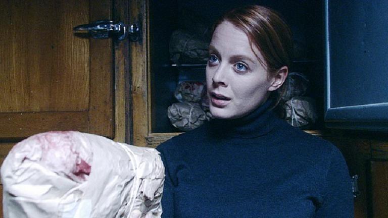 Many lists, horror and otherwise darkly toned, end up suggesting La peau blanche (English title – which I’ll use from here on out: White Skin). The cover art alone always stuck with me, very literal with the white skin yet intriguing nonetheless. The guy on the front is white but a little less so, his eyes extremely blue. All contrast against the woman, her gingery near blonde hair flowing, then her face and neck almost disappearing into one as a wave of white skin, reddish lips around the middle. I’m often reeled in by interesting artwork for movies, some times this doesn’t work at all. But there’s something about a cool looking poster that can get me interested immediately. Not only that, when I hear words like cannibalism, vampire, succubus – these sorts of things – I tend to perk up even more. Add to all this the fact White Skin is a Canadian film, you’ve got yourself an interesting bit of work.