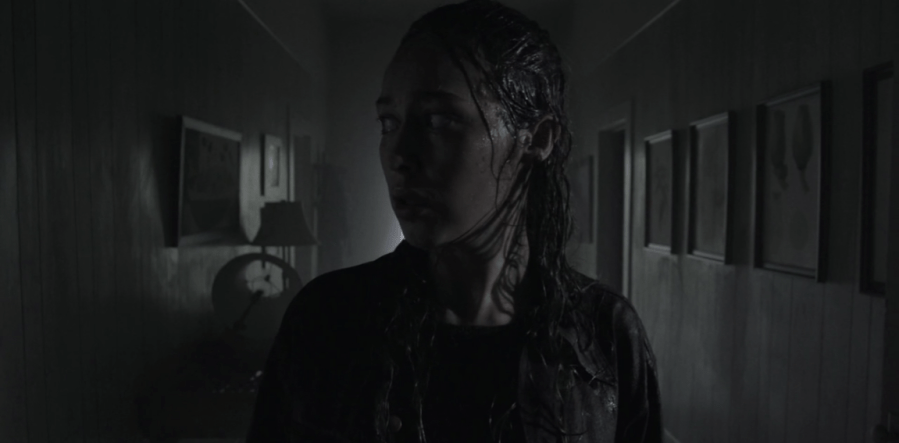 Inside, things go real bad. Alicia puts the gun in Charlie’s face, stopping short of shooting her. The situation’s deteriorating, and right now there’s nowhere to go, between the horde of zombies at the door and the heavy storm beating down from the sky. Except Charlie’s going out on the veranda, out to where the zombie’s impaled on the tree. She just about lets it chomp into her before Alicia brings her back in. Alicia’s figured out the girl has a death wish, and the gun was Charlie way to “get off the hook” for the bad she’s done. What we see, in this scene, is Alicia isn’t totally lost to her grief, she hasn’t yet let the humanity in her die.