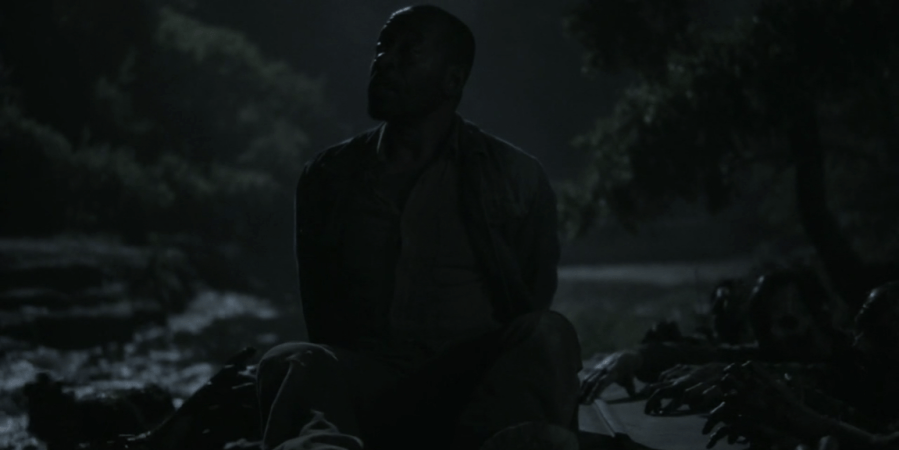 We get back to Morgan (Lennie James) on the road by himself. He looks for his friends, as well as shelter from the storm overhead. He finds a spot to hole up a while, until the weather breaks. Next day, things are okay outside. This is when he discovers he’s in Mississippi— news to him. Took a little truck ride, apparently. First thing he does is head out to scavenge any supplies around the area.