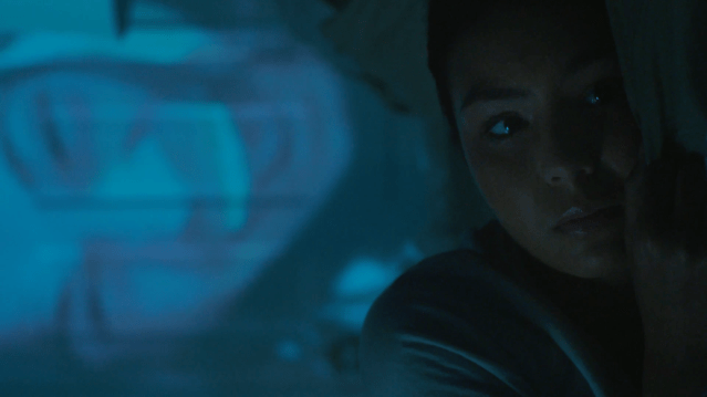 One of the best parts about It Needs Eyes is how the internet and its algorithms are portrayed almost as Lovecraftian monsters with tentacles that reach out through our screens and grip our eyes, our minds, and our souls. When Rowan views a video of a man losing his mind, the man says: “It‘s like algorithms, they know what you want more than you know what you want . . . tells you what you want . . . and it keeps eating and consuming it all . . . its fingers, its tentacles . . . it’s everywhere . . . it‘s so fucking hungry.” The internet’s/algorithms’ tentacles and the effect on our eyes is portrayed in the film via a gruesome act of violence that doesn’t become apparent until the end when Rowan witnesses an unsettling entity and all the damage it has caused.